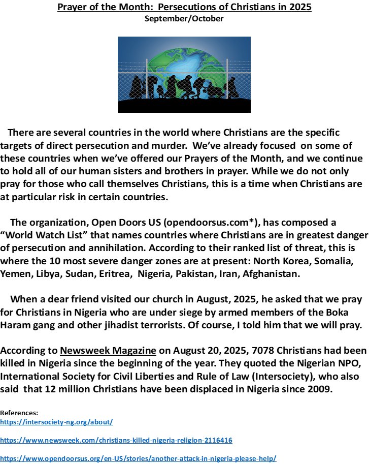 Prayer of the Month Sept.- Oct. Persecution of Christians